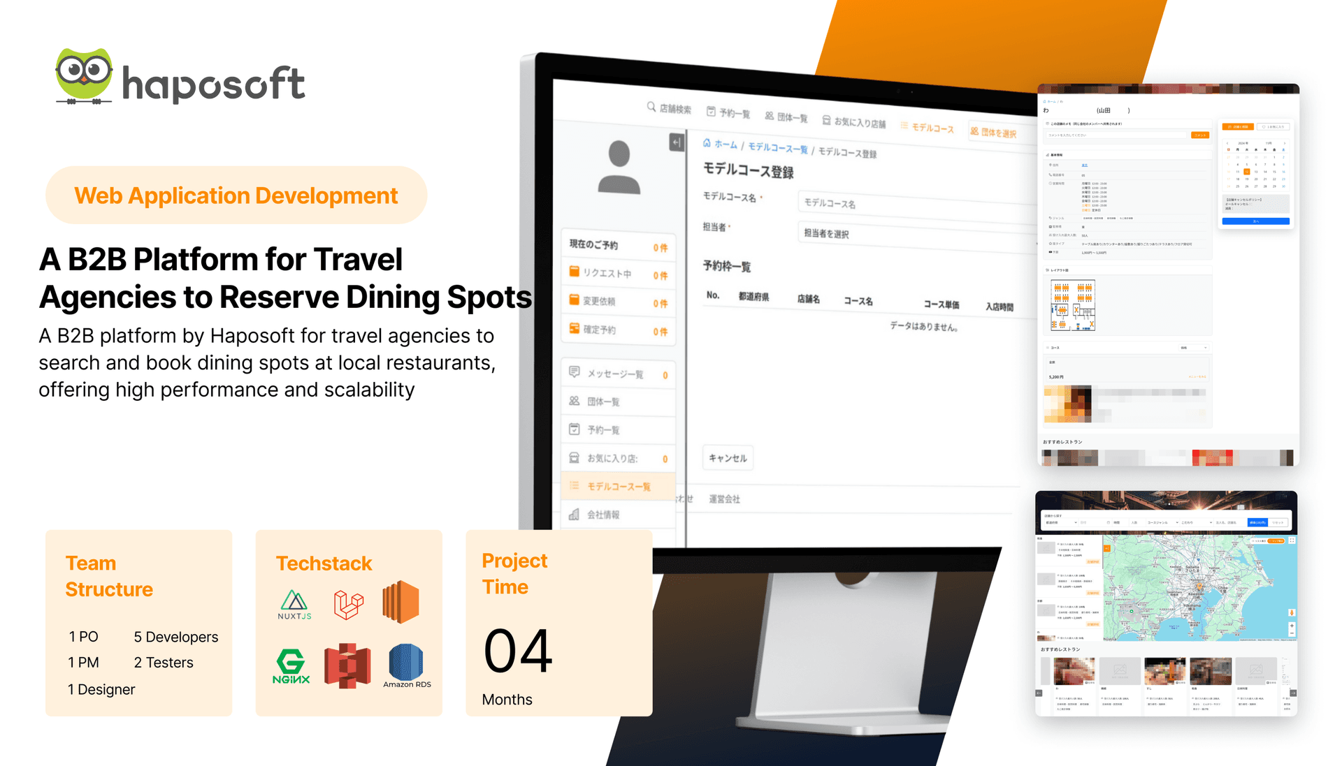 With a simple yet powerful solution, Haposoft helped the client overcome their challenges of restaurant booking and reservation management. With the new system, travel agencies and restaurants can now easily manage large bookings without the risk of errors or miscommunication. The platform is both user-friendly and scalable, positioning the client to grow their business confidently as demand increases.