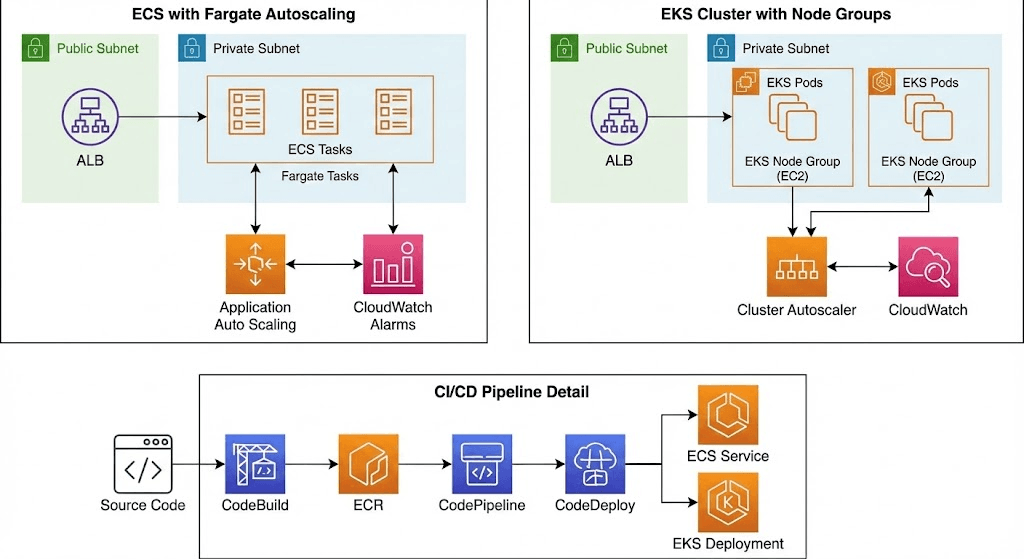 These are not edge cases but standard problems in any large-scale microservices system. AWS addresses them through a combination of Amazon ECS, Amazon EKS, and AWS Fargate, each offering a different trade-off between simplicity, control, and operational responsibility. The goal is not to choose one blindly, but to use them in a way that keeps the system scalable without introducing unnecessary complexity.